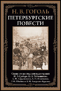 В сборник вошли «петербургские повести» классика русской и мировой литературы Николая Васильевича Гоголя (1809–1852): «Невский проспект», «Нос», «Портрет», «Шинель» и «Записки сумасшедшего», а также две «непетербургские» повести: «Коляска» и «Рим», традиционно печатаемые вместе с ними согласно авторскому замыслу. Книга проиллюстрирована 132 рисунками художников Игоря Эммануиловича Грабаря (Храброва) (1871–1960), Николая Андреевича Зубчанинова (1866–1908), Дмитрия Николаевича Кардовского (1866–1943), Алексея Ильича Кравченко (1889–1940), Ральфа Федоровича Штейна (1854–1896) и 28 гравюрами с актера Василия Николаевича Андреева-Бурлака (1843–1888). «Петербургские повести» — условное название сборника из пяти повестей, написанных Николаем Васильевичем Гоголем в 1832–1842 гг. и объединенных общим местом действия — современным автору Санкт-Петербургом. Сам Гоголь этот термин не употреблял, впервые он появился в книге историка литературы Владимира Ивановича Шенрока «Материалы для биографии Гоголя» (1892–1897). Различные части «Петербургских повестей» сочинялись и публиковались в разные годы и впервые объединились под одной обложкой только в 1842 г. Традиционно в сборник включают также две «непетербургские» повести — «Рим» и «Коляску», поскольку все эти семь произведений сам Гоголь объединил в третьем томе своего первого собрания сочинений (1842 г.), придав им характер цикла. Кроме того, очевидна стилистическая и тематическая перекличка этих повестей с «петербургскими», что особенно заметно в «Риме» — романтической новелле о художнике, сходной и с «Портретом», и с «Невским проспектом», не говоря уже о проходящей красной нитью теме большого города. Три повести — «Невский проспект», «Портрет» и «Записки сумасшедшего» (последняя под заголовком «Клочки из записок сумасшедшего») — были впервые опубликованы в сборнике «Арабески» 1835 г., две — «Нос» и «Коляска» — в пушкинском «Современнике» 1836 г.; повесть «Рим» (это фрагмент незаконченного романа «Аннунциата») впервые появилась в журнале «Москвитянин» 1842 г. (№ 3), а «Шинель» (первоначальное название — «Повесть о чиновнике, крадущем шинели») — в вышеупомянутом третьем томе первого собрания сочинений 1842 г. Несмотря на эти публикации, Гоголь продолжал работать над текстами всех этих произведений и в последующие годы, многие значительные правки были внесены автором после 1851 г. при подготовке второго издания своих сочинений. Гоголь не был коренным петербуржцем, однако его описания Северной столицы и мытарств ее обитателей не знают себе равных. Одна из отличительных черт данного сборника — обилие иллюстраций, выполненных целой плеядой талантливых художников. Гоголь снискал славу литературного классика еще при жизни, и неудивительно, что его произведения вдохновляли, да и продолжают вдохновлять многих мастеров кисти и карандаша. Книга проиллюстрирована 132 рисунками художников Игоря Эммануиловича Грабаря (Храброва) (1871–1960), Николая Андреевича Зубчанинова (1866–1908), Дмитрия Николаевича Кардовского (1866–1943), Алексея Ильича Кравченко (1889–1940), Ральфа Федоровича Штейна (1854–1896) и 28 гравюрами с актера Василия Николаевича Андреева-Бурлака (1843–1888).